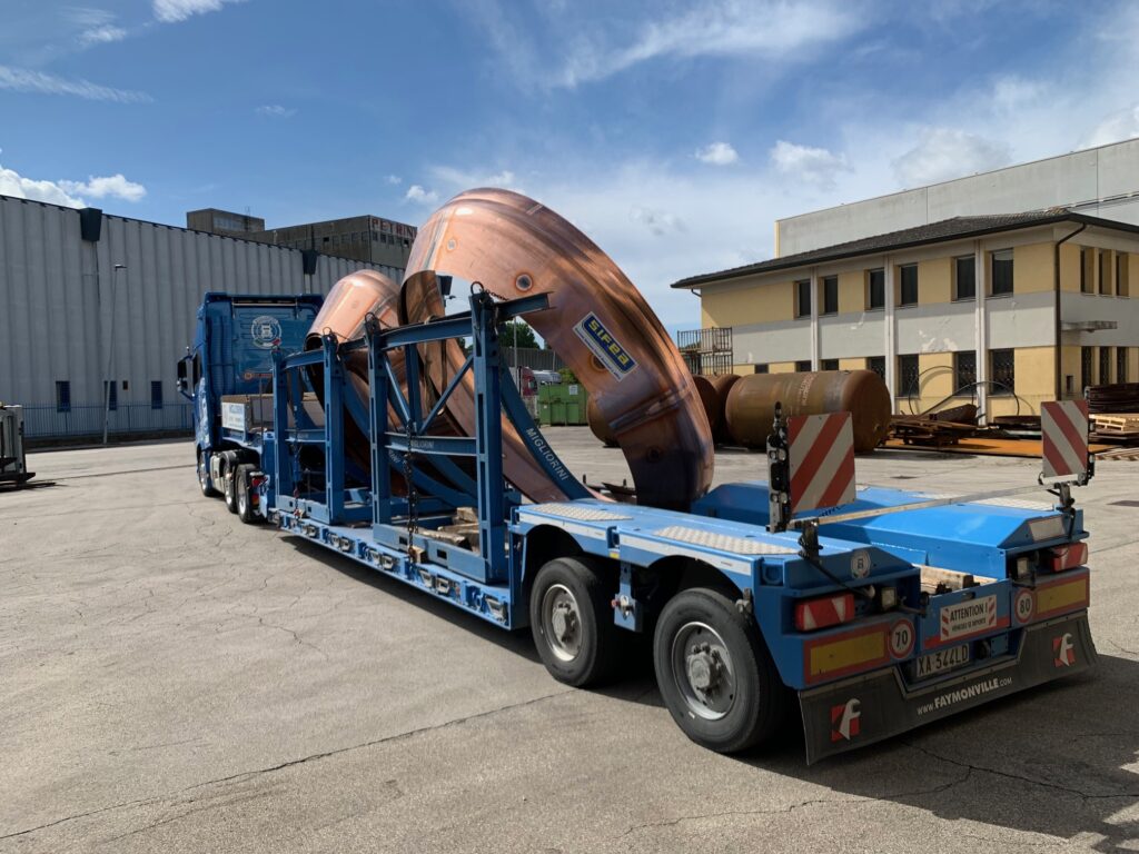 This is confirmed by the long-lived trust given to us by a leading brand in the design and construction of distillation systems for which we have just completed the creation of an outwards beaded shallow dished head of Ø 3380 mm and flanged concentric cone with a greater Ø 3680 mm in annealed copper.